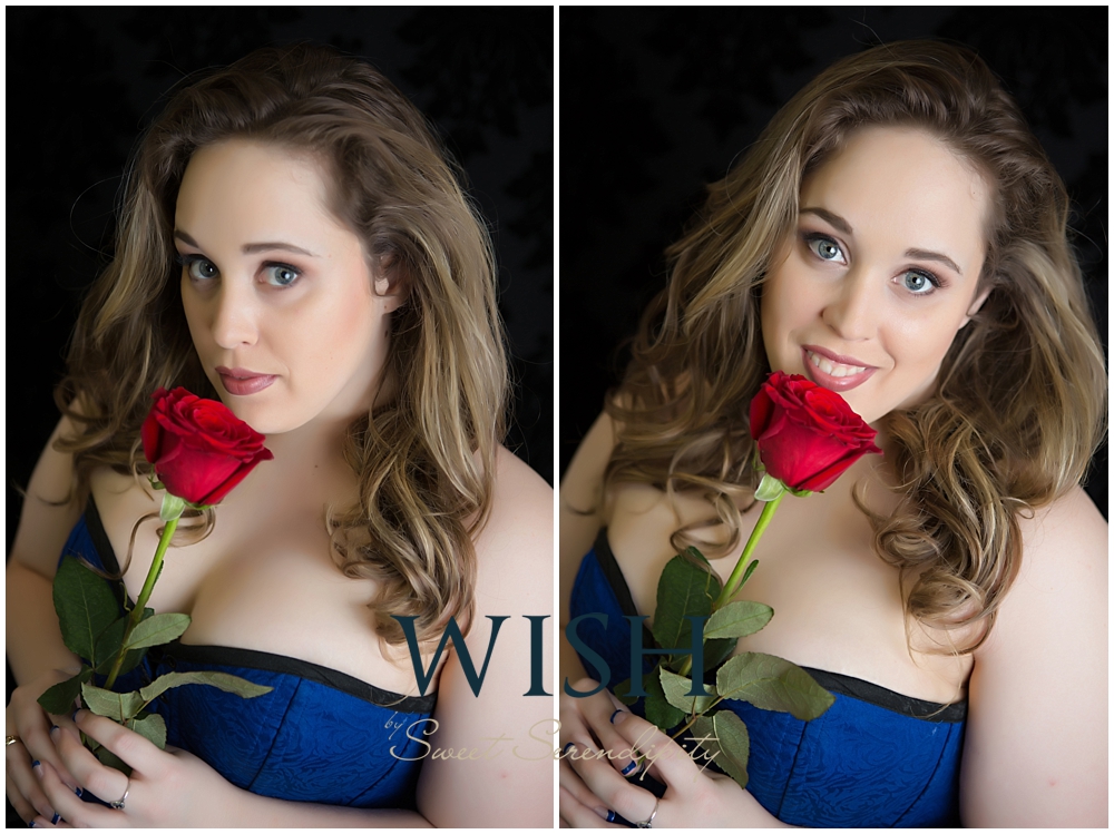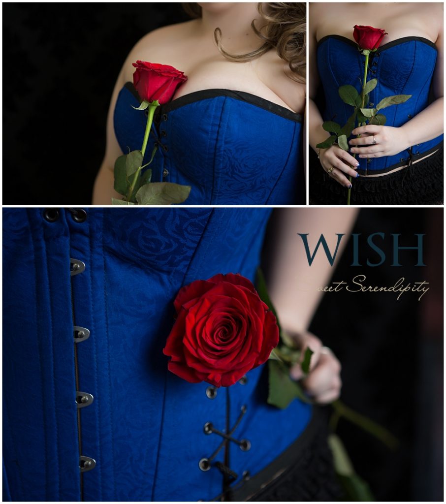 Ms. J wanted to give her boyfriend a gift to celebrate their one year anniversary. She had a lot of ideas to incorporate with things that meant a lot to them in their relationship- especially this gorgeous red rose that she used in a lot of poses during her session. And check out that gorgeous royal blue corset- it was perfect for her session.